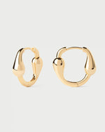 Sculptural oval huggie hoops with asymmetric design featuring elongated drop-shaped motifs. The jewelry essentials embody everyday versatility. Timeless staples that go beyond basic jewelry: earrings, rings, necklaces and bracelets that are perfect for daily wear but can also be stacked for special occasions.