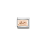 Original Charm for Nomination's Composable Classic bracelet in stainless steel and bonded rose gold with “Mum” engraved. Made in Italy. Mum, the person who knows you the most and gives the best advice!
