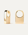 Gold-plated distinctive geometric hoop earrings with an elongated square shape. The jewelry essentials embody everyday versatility. Timeless staples that go beyond basic jewelry: earrings, rings, necklaces and bracelets that are perfect for daily wear but can also be stacked for special occasions.