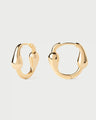 Sculptural oval huggie hoops with asymmetric design featuring elongated drop-shaped motifs. The jewelry essentials embody everyday versatility. Timeless staples that go beyond basic jewelry: earrings, rings, necklaces and bracelets that are perfect for daily wear but can also be stacked for special occasions.